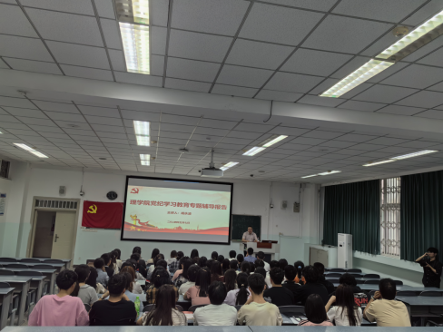 胡永波以《讲政治、将学习、讲担当、讲纪律——如何做一名合格的学生党员》为题,立足学院具体工作,结合具体典型案例,向全体学生党员作党纪学习教育专题辅导报告。第一,讲政治,明理修身。作为学生党员,明理就是要坚定理想信念,修身就是要提高党性修养,要利用多渠道、采取多形式主动加强党史学习,践行“学史明理、学史增信、学史崇德、学史力行”,从而做到“理论上清醒,政治上才能坚定”。要坚持以党性立身、党性做事,把说老实话、办老实事、做老实人作为党性修养和锤炼的重要内容,使自身党性更加纯粹、理想信念更加坚定,以坚强的党性为奋进新时代、担当新使命提供坚实的支撑和保障。第二,讲学习,敏学笃行。作为学生党员,敏学就是要学习为本,笃行就是要知行合一。一是夯实理论学习,学习习近平新时代中国特色社会主义思想,并用以武装头脑、指导实践、推动工作;二是加强专业学习,打牢专业基础,掌握核心科技,做到遥遥领先;三是加强修身学习,以学修身,身修家齐,做到持续开放、终身学习。第三,讲担当,挺膺负责。作为学生党员,挺膺负责就是敢于担当、善于担当。从历史的视角,要做到“为天地立心,为生民立命,为往圣继绝学,为万世开太平”;从时代的视角,要做到“坚定不移听党话、跟党走,怀抱梦想又脚踏实地,敢想敢为又善作善成,立志做有理想、敢担当、能吃苦、肯奋斗的新时代好青年,让青春在全面建设社会主义现代化国家的火热实践中绽放绚丽之花”;从学院的视角,要服务大局,能够在学院的升学计划和助学计划、心理危机干预及处置、就业工作推进和安全文明离校等工作中,积极参与,主动作为,贡献力量。第四,讲纪律,以身作则。作为一名学生党员,以身作则就是要打铁必须自身硬,要高度重视党纪学习教育,认真学习《中国共产党纪律处分条例》,搞清楚党的纪律规矩是什么,弄明白能干什么、不能干什么,把遵规守纪刻印在心,内化为言行准则,进一步强化纪律意识、加强自我约束、提高免疫能力,增强政治定力、纪律定力、道德定力、抵腐定力,始终做到忠诚干净担当,做到学纪要真学、知纪要真懂、明纪要真信、守纪要真行。