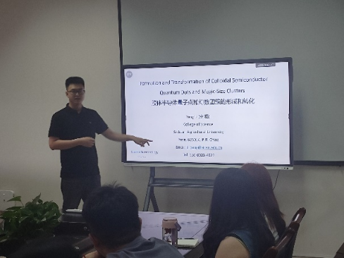 5月24日,kaiyun登录中国入口登录引进人才、应用化学系李杨副教授在“kaiyun登录中国入口登录第二十期理学讲堂”中,作了题为《胶体半导体量子点和幻数团簇的形成及转化》的学术报告,学院40余名研究生参与学习。