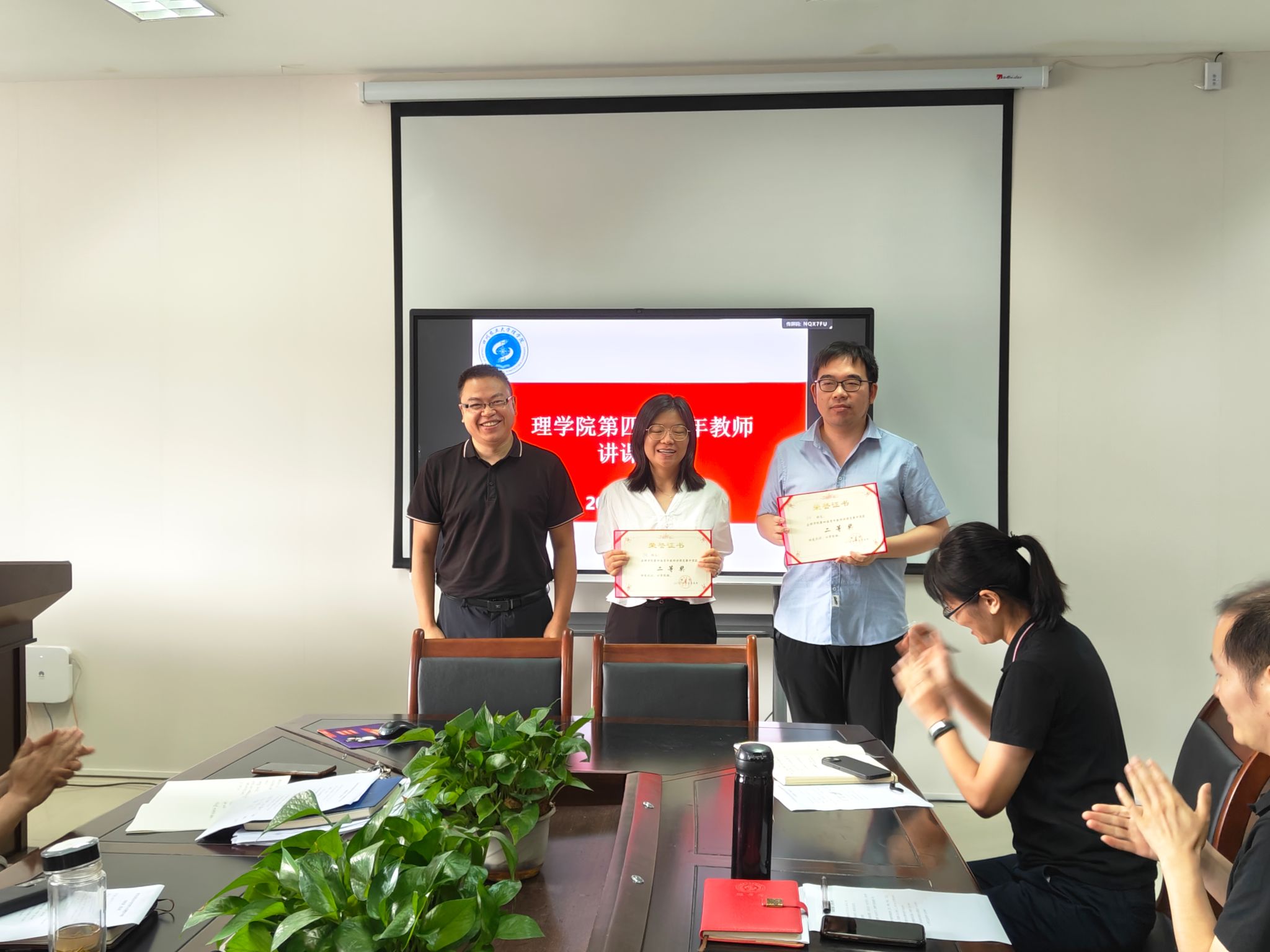 在讲课竞赛环节,参赛对象为入职且承担本科课程课堂教学任务未满3年的6位青年教师,他们分别从各自承担的《概率论与数理统计》《化工原理》《高分子化学》《物理化学》《药物分析》《生物无机化学》课程进行说课和相关章节的教学内容展示,从“狼来了”故事引出贝叶斯公式的推导和应用,从生活中常见的高分子制品的性能和用途阐述自由基共聚合的原理和意义,从本校科研团队的最新研究成果诠释生物无机化学的神奇与奥妙……各位参赛教师着装规范、教态大方,教学课件制作精良且内容设计巧妙,充分展示了扎实的专业功底和与时俱进的教育理念。评委们对充分肯定了学院青年教师积极投身本科教学的热情和赛前精心准备,同时也分别指出了在课程思政融入、教学节奏把握和教学方法运用等方面存在的一些问题,并给出改进建议。最终经评审打分,王芝老师获一等奖、 吴春和王位两位老师获二等奖,李杨、何丽、苏葛鸿三位老师获三等奖。