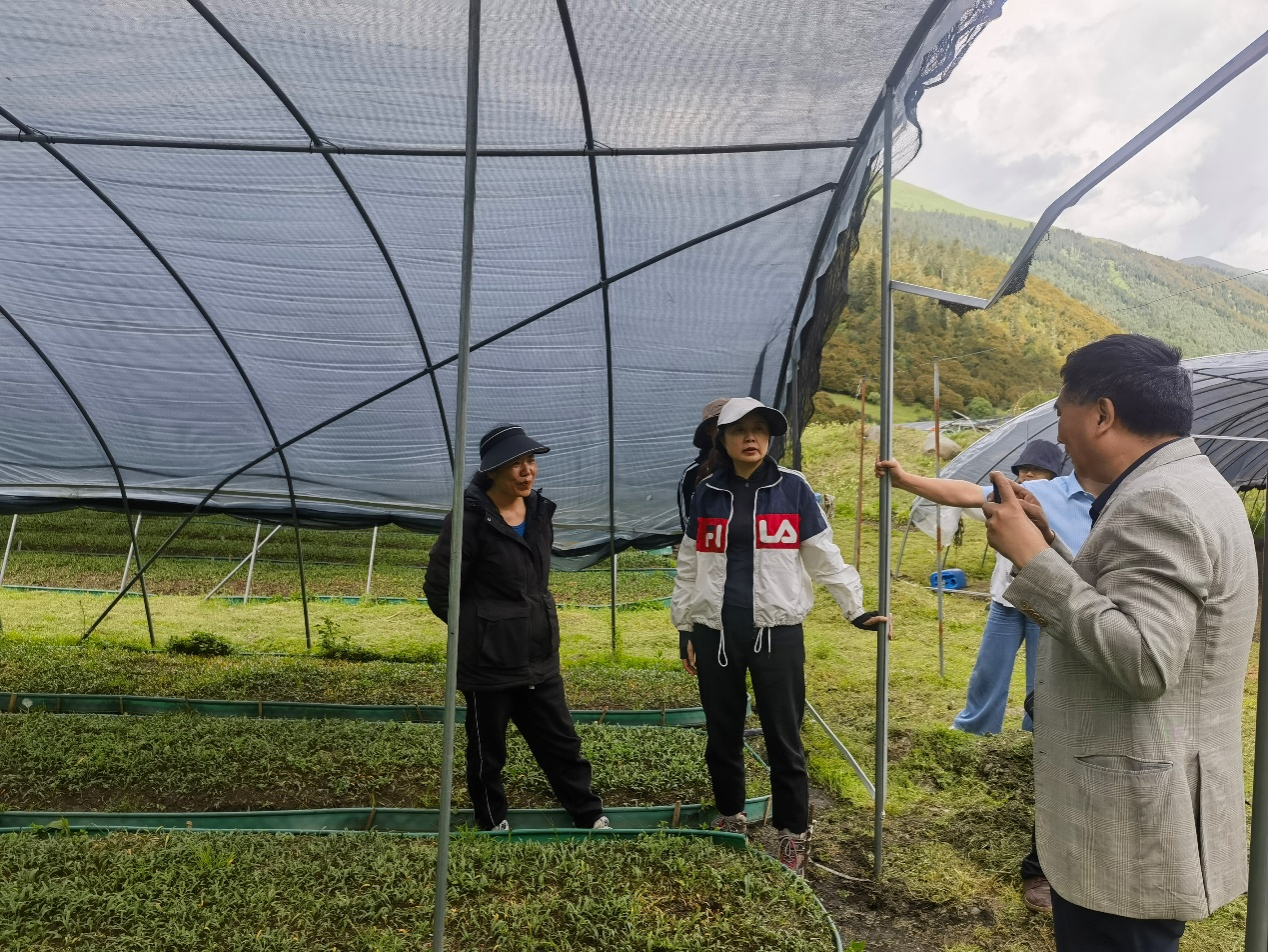 由于川贝母基原种多、种植年限长、技术要求和种植成本高,为保证企业千亩川贝母基地建设项目的稳步推进,7月8日,张利教授带领团队姜媛媛副教授、廖进秋副教授,以及四川逢春制药有限公司董事长黎勇和基地管理技术人员毛昌辉,共同赴团队长期技术指导的丹巴县甘孜州佳源中药材种植有限责任公司川贝母基地进行现场考察,共商企业合作,共同推动我省川贝母产业化发展。