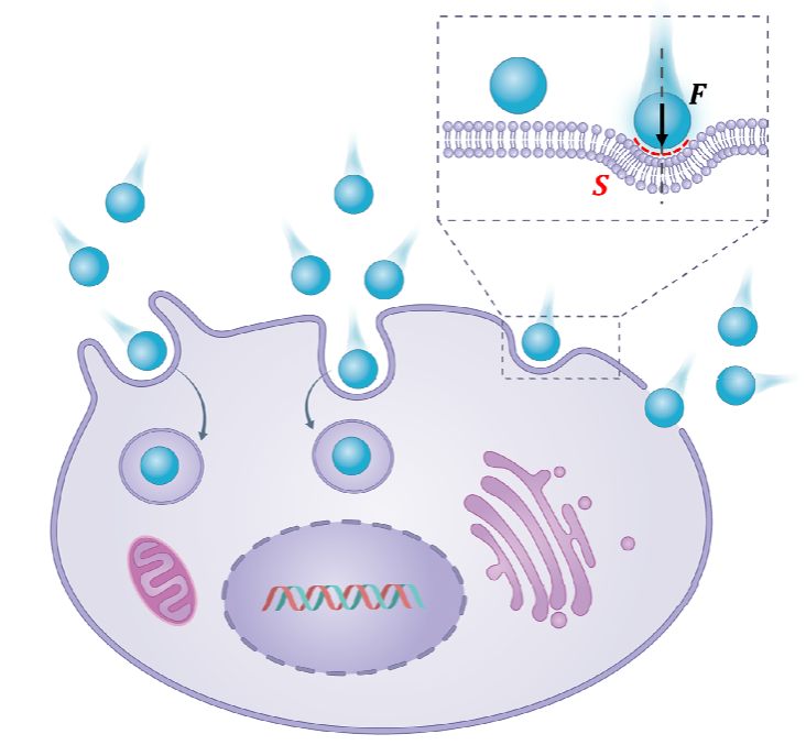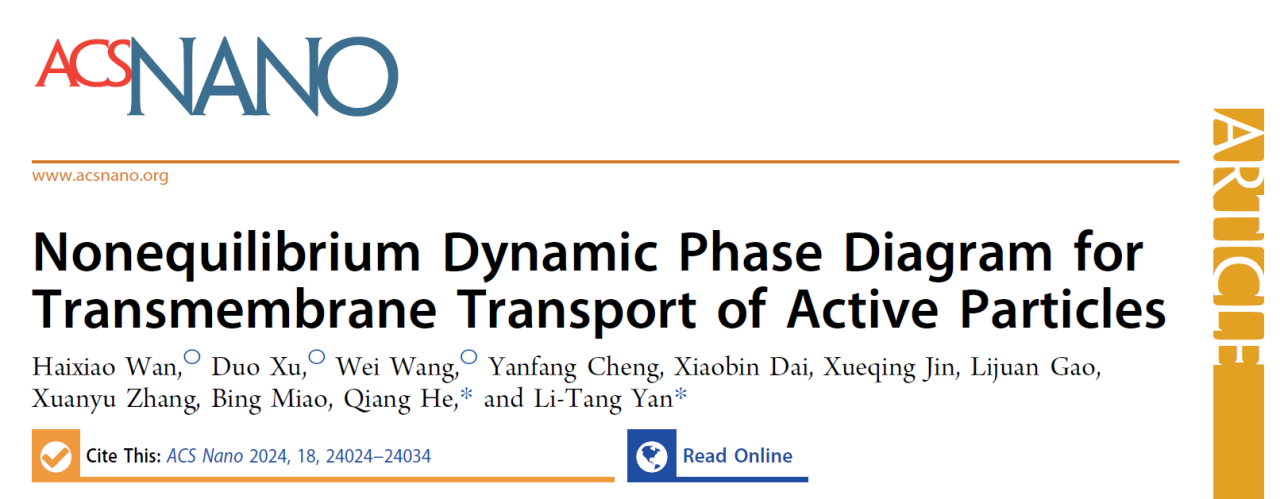 纳米马达是指能将周围环境中存储的化学能或其它形式能量转化为自推进运动的纳米系统。纳米马达能够在各种生物介质中进行可控运动,有望在生物体中自主运动到正常药物难以到达的组织部位,具有彻底改变疾病诊断和治疗的巨大潜力。具备自主驱动能力的纳米马达被认为能够直接突破细胞膜屏障,但可能会导致细胞膜破裂。因此,探究细胞膜对纳米马达这种极端影响的基本行为对于开发纳米马达生物医学新技术至关重要。然而,从细胞内吞过程到纳米马达直接突破细胞膜屏障的非平衡过程背后的物理原理仍然不清楚,实验研究也同样具备挑战性。为解决上述问题,论文通过理论模拟手段计算纳米马达跨膜转运的动态相图,并根据纳米马达活性(Peclet number)和细胞膜张力确定了从细胞内吞到纳米马达直接渗透的四个特征动态阶段。通过理论模型解析,获得了划分这些相的边界,阐明了非平衡物理学和不同相之间转变的标准。此外,通过实验验证,在纳米马达内吞过程中与颈缩和包裹之间相互作用有关的三种不同的动态机制,并与被动粒子形成了鲜明对比。论文以“Nonequilibrium Dynamic Phase Diagram for Transmembrane Transport of Active Particles” 为题发表在《ACS Nano》(IF = 15.8)上。该论文通讯作者是清华大学燕立唐教授和哈尔滨工业大学贺强教授,清华大学博士后万海肖、许多、kaiyun登录中国入口登录特聘副教授王位为共同第一作者。