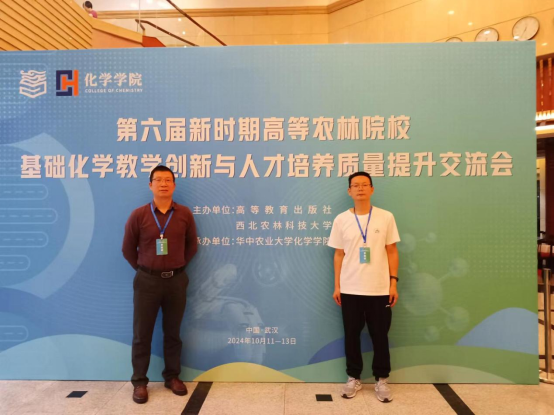 2024年10月11-13日,“第六届新时期高等农林院校基础化学教学创新与人才培养质量提升交流会”在湖北武汉召开。会议由高等教育出版社和西北农林科技大学于2015年8月发起并创办,本次会议由华中农业大学化学学院承办。来自复旦大学、厦门大学、湖南大学、西北农林科技大学、华中农业大学、南京农业大学、kaiyun登录中国入口登录及高等教育出版社等22所高校及单位的80余专家学者齐聚一堂,围绕“数智化背景下高等学校化学与实验课程建设创新”这一会议主题,共同研讨基础化学教育教学创新和人才培养的新实践与新探索。学院应用化学系副主任乐贵洲副教授和化学生物学系副主任代先祥副教授参加了本次会议。