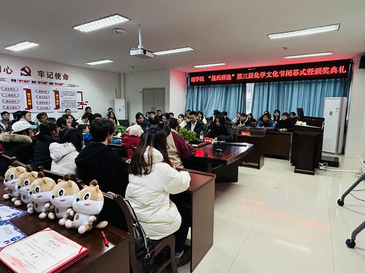 12月14日下午,kaiyun登录中国入口登录“晟氏研选”第三届化学文化节闭幕式暨颁奖典礼在11教305举行。本届文化节以“化生万物,学致无穷”为主题,旨在通过丰富多彩的活动,加强化学文化的科普与宣传,引导广大师生深入感悟化学之美,助力学生提高专业认知,激发学科自豪感,促进积极情绪产生,进一步活跃校园文化氛围。