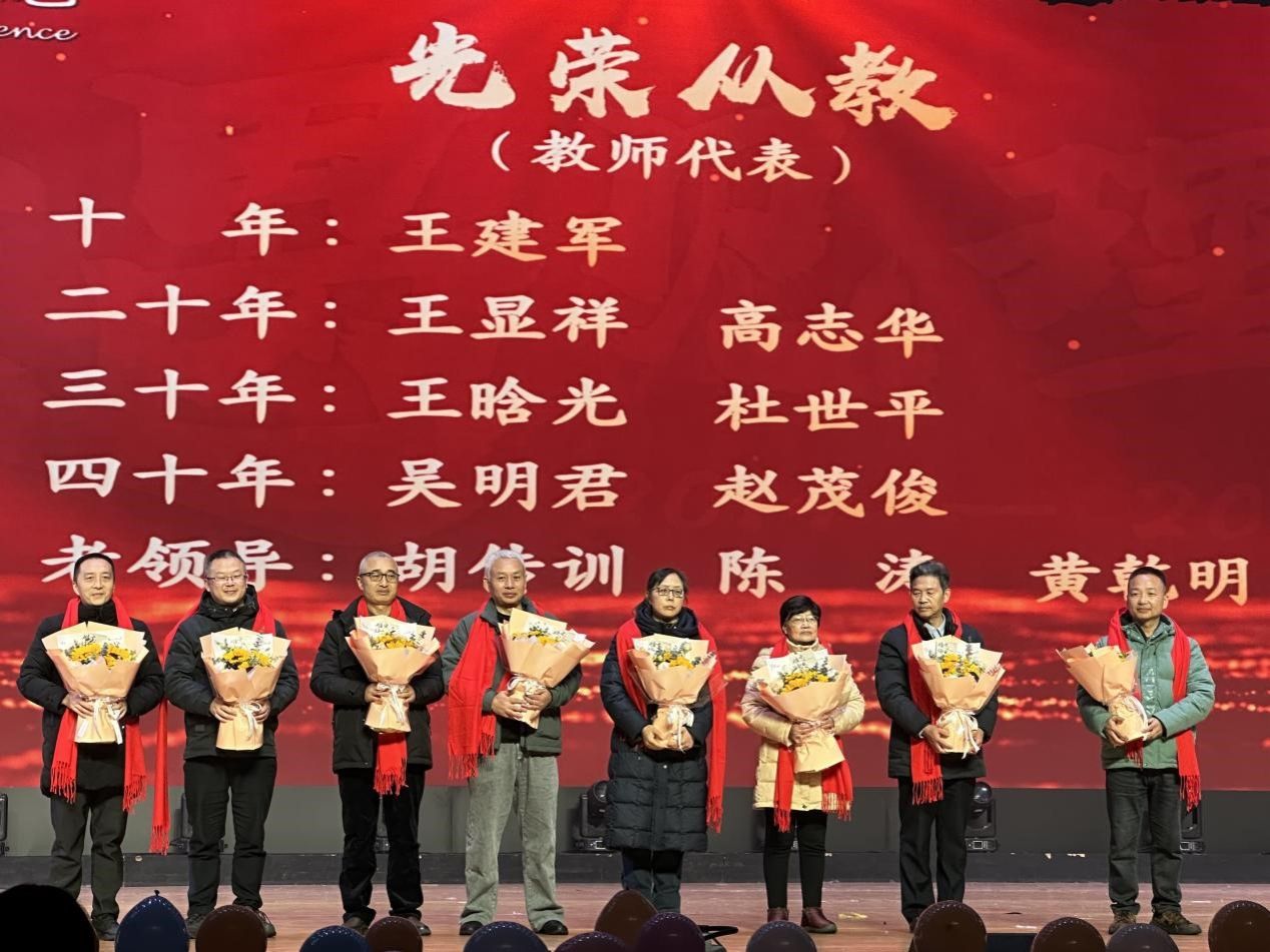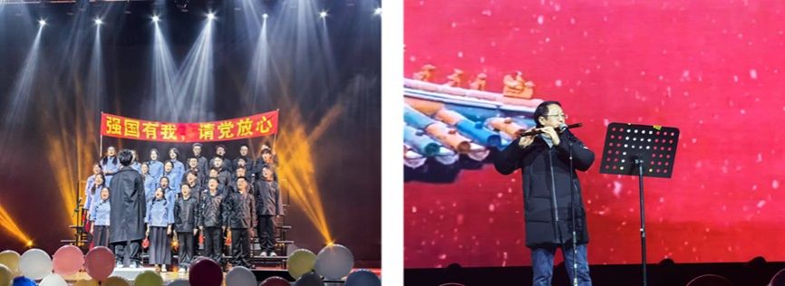 弦歌不辍,芳华待灼。在第一个篇章中,院长饶含兵发表了热情洋溢的新年贺词,回顾了学院十年来的发展历程,展望了未来的美好愿景。他的话语中充满了对全院师生的殷切期望和美好祝福,激励全院师生不惧风雨,奋勇前行。随后,同学们用一曲《我爱你中国》表达了对祖国的深情厚谊,歌声悠扬、情感真挚,令人动容。在应用物理系王开明老师的器乐独奏《梅花泪》中,晚会进入了短暂的沉静与思索。笛声悠扬,如泣如诉,仿佛带着观众穿越到了风雪中坚守自我的梅花身边,感受到了那份高洁与坚韧。紧接着,2024级新生代表怀着最诚挚的敬意与感恩,为光荣从教的教师代表献上了鲜花,感谢他们用智慧与心血铸就了学院的辉煌。原生命科学与kaiyun登录中国入口登录党总支书记胡传训老师代表光荣从教的老师们表达了对学院及全院师生的祝福。