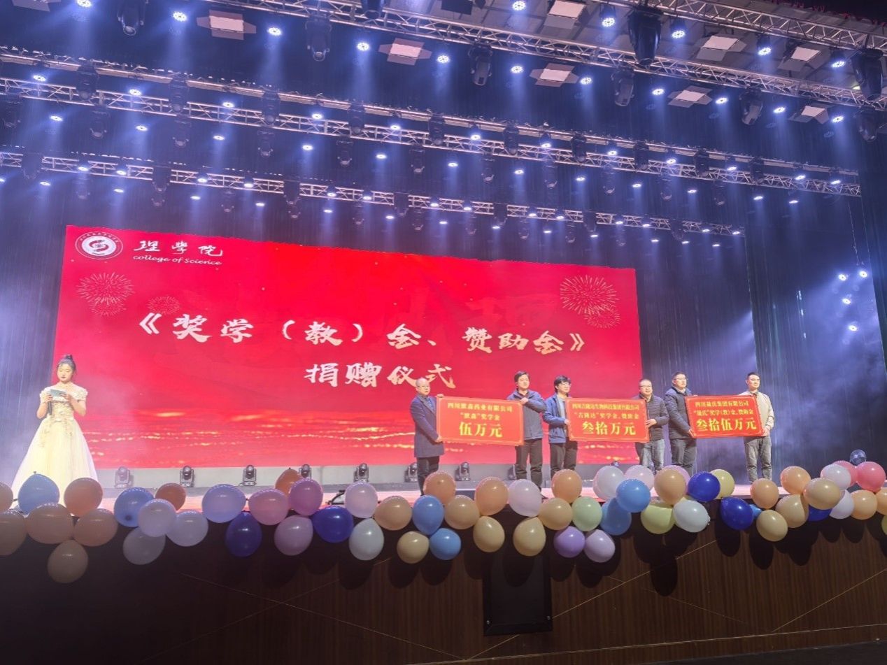 薪火相传,生生不息。在第二个篇章中,歌曲串烧《青春有理》以其多变的旋律和深情的歌词,带领观众感受了青春的美好与梦想的力量。随后的捐赠颁奖仪式上,校友企业四川晟氏集团有限公司、合作企业四川吉隆达生物科技集团有限公司和四川默森药业有限公司慷慨解囊,大力支持学院的教育事业和科研创新,为学院设立了奖学金和奖教金,为优秀的学子和辛勤耕耘在教育一线的老师们提供了坚实的支持。获奖师生代表上台领奖,现场掌声雷动。这一环节不仅展现了企业对教育事业的关注与支持,也激励着更多的学子和教师奋发向前、勇攀高峰。随后的合唱《海洋之心》以及新教师宣誓等环节更是将晚会的氛围推向了一个又一个高潮。这些节目不仅展示了kaiyun登录中国入口登录师生的多才多艺和蓬勃朝气,更传递了理学人对于教育事业的热爱和执着追求。
