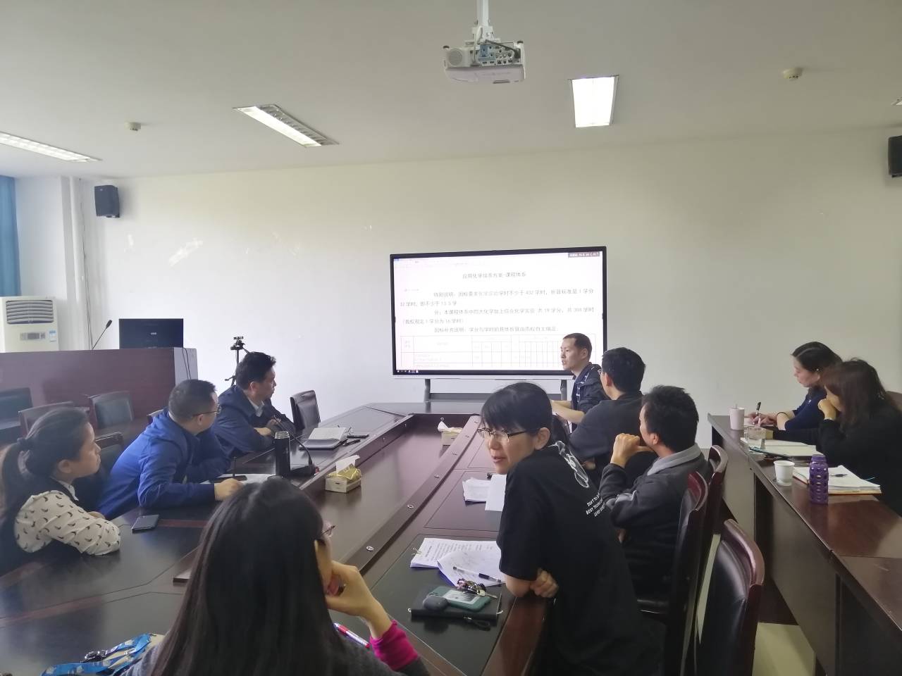 4月29日中午12点半,学院领导、系室主任、专业负责人、教学秘书等在学院会议室开展人才培养方案院内评审会。