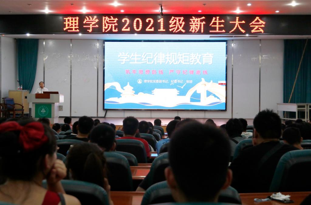 张翅从校规校纪、学风建设、疫情防控等方面向新生们提出要求,结合身边案例,从大学生行为基本准则、学校管理制度、学术道德、科研诚信等方面与新生谈纪律规矩教育。新生大会当日恰逢教师节,她表示,学生守纪律,老师的工作就很顺利;学生爱学习,老师每天都很快乐;学生有成长,老师的工作就有意义。