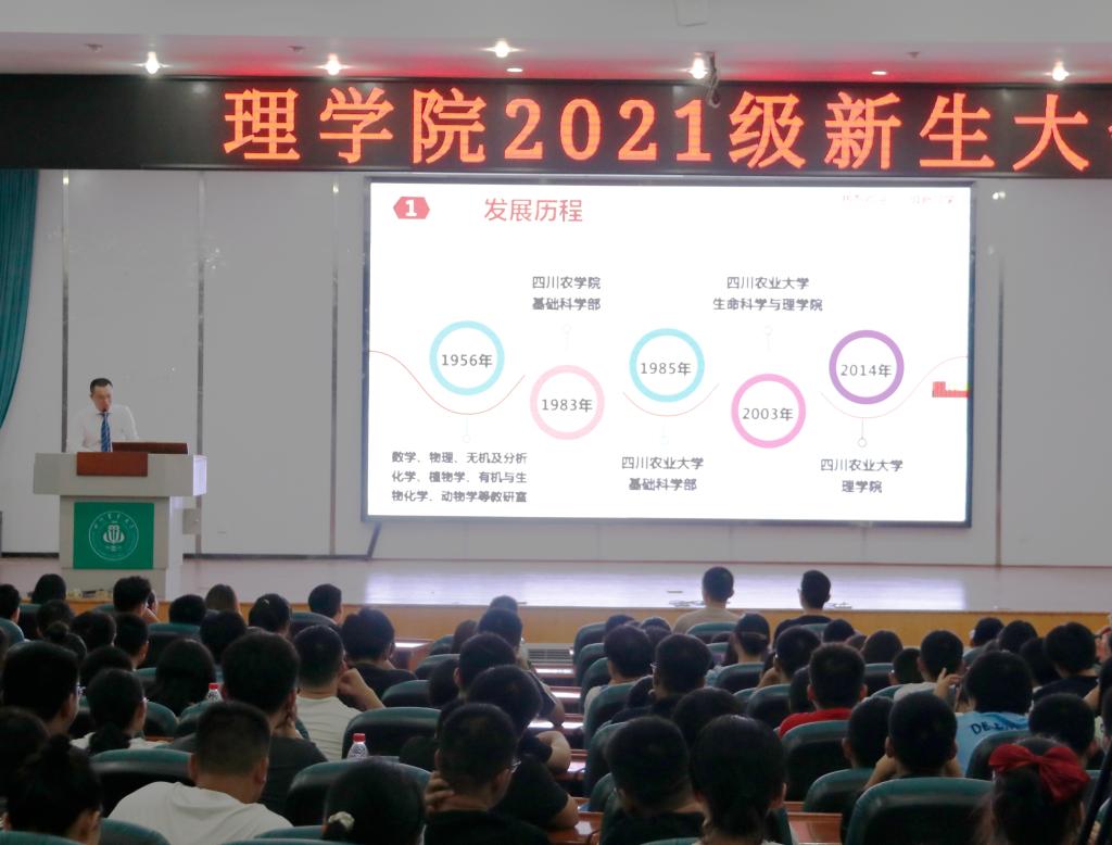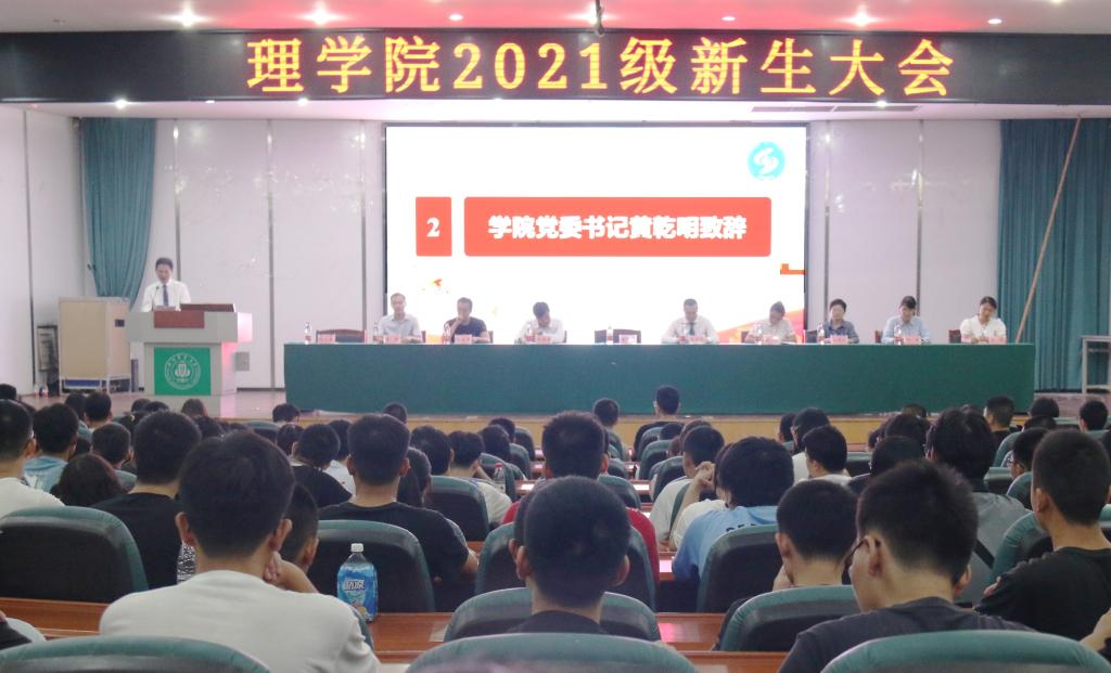 会议在嘹亮的国歌声中拉开帷幕。国歌奏毕,黄乾明致辞,他代表学院对2021级新生表示最衷心的祝贺与最热烈的欢迎。他介绍了学院的发展历史、人才培养等情况,并嘱咐同学们在大学里坚持“三要”:一要坚定理想信念,树立远大理想,尽快认清大学生活的真实意义,明确自己的理想与追求并不懈奋斗;二要努力学习知识,以川农大精神为指引,不断提高与时代发展相适应的素质和能力,成为可堪大用、能担大任的栋梁之材;三要勇担时代重任,砥砺奋进,努力成为一名能肩负起时代使命和责任的奋进者、开拓者和奉献者。他希望同学们尽快调整好心态,适应新角色,投入到学习中去,在独立思考中成长,在认清自我中成人,在担当责任中成熟,在创造生活中成才。