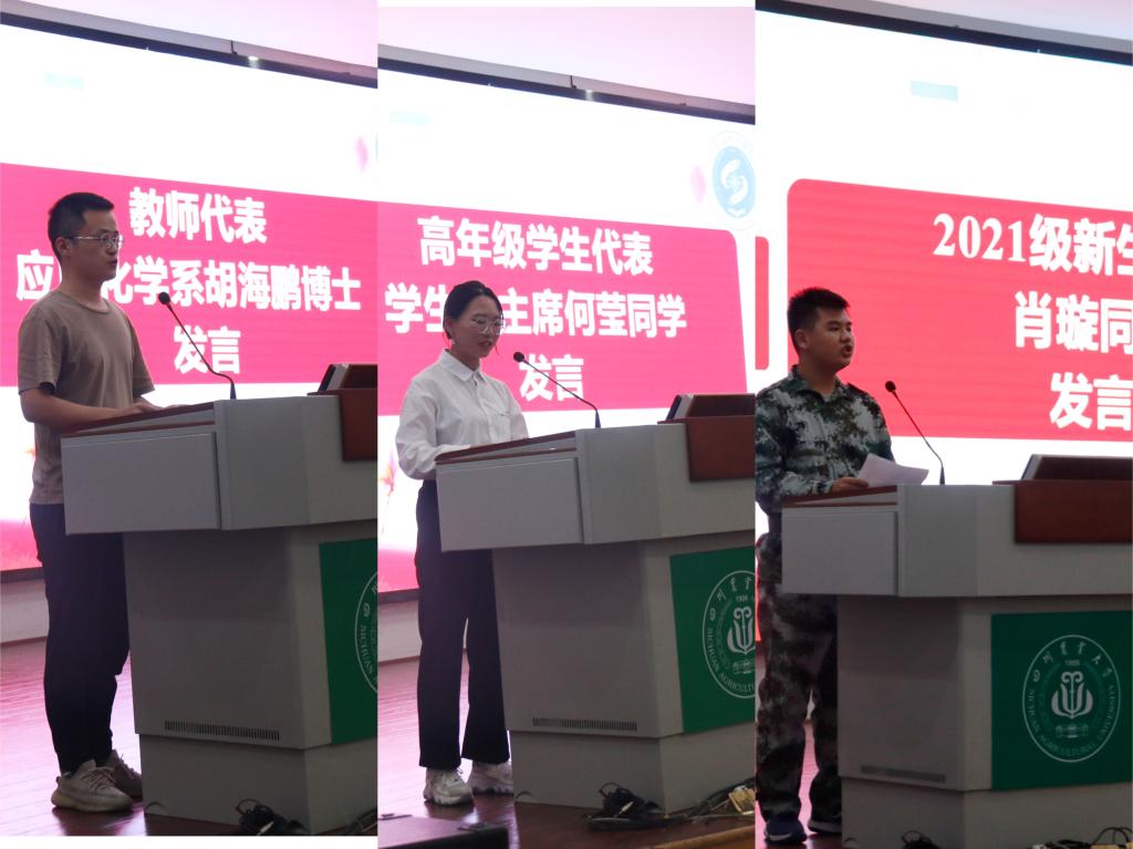 学院学生会主席何莹代表高年级学生对萌新们的到来表示热烈欢迎,并分享了自己的三点感悟。希望新生用爱国敬业的继承者精神、艰苦奋斗的追梦人精神、团结拼搏的担当者精神、求实创新的学习者精神激励自己,追寻理想,不负韶华。