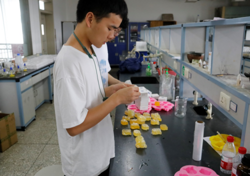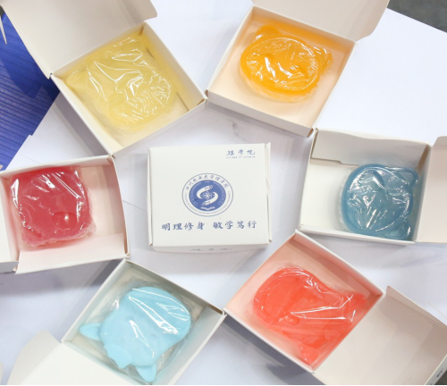 手工皂是应用化学与化学生物学专业同学必修课——精细品化学课的实验成果。为萌新们送去手工皂既让他们了解化学在生活中的应用,也希望提高他们对化学专业的热爱。经过反复讨论,手工皂采用熊猫和小牛的模具。因为雅安素有“天府之肺、熊猫故乡”之称,熊猫寓意着欢迎萌新来到雅安;2021年恰逢牛年,同时寓意着“川农牛”“勇敢牛牛不怕困难”,表达了学院希望新生们“犇”向新征程的美好愿望。历经多天制备与包装,高年级同学们亲手制作了350余块手工皂,饱含着对新生的欢迎与祝福。