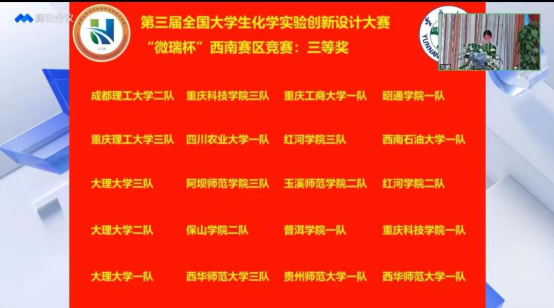 7月17日-19日,第三届全国大学生化学实验创新设计大赛(西南赛区)决赛在云南大学闭幕。本次比赛为团体赛制,受疫情影响比赛线上进行,设有专家盲审、线上答辩、专家提问等环节。