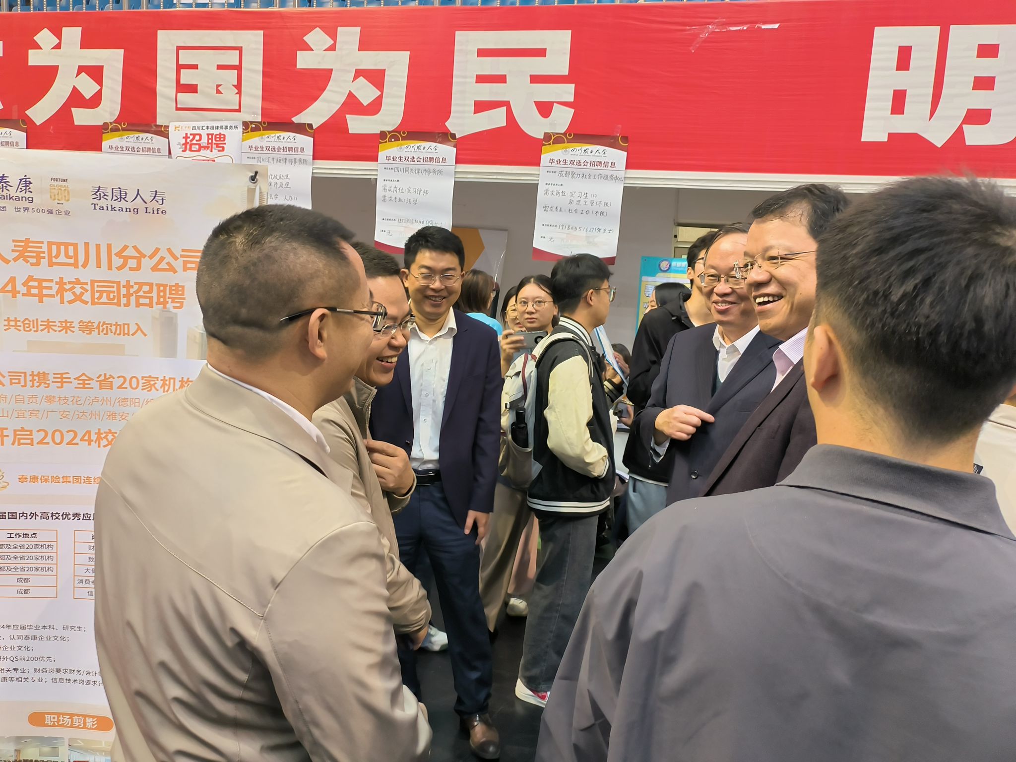 双选会期间,学校党委副书记张强和招生就业处处长廖鹏等一行来到kaiyun登录中国入口登录展区慰问交流,学院领导汇报了前来招聘企业的情况和毕业生就业进展,张强肯定了kaiyun登录中国入口登录近年来的工作成绩,并对学院下一步工作提出了新的要求。