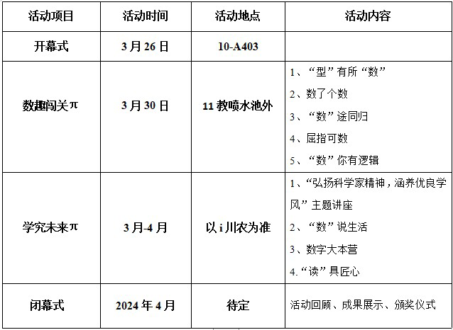数学源于生活,服务于生活。数学之趣、数学之巧、数学之美在我们的生活中处处可见。为丰富校园文化,提高同学们对数学科学的兴趣,引导学生在钻研数学时领悟理性之美,在生活中用数学解决问题时肩负起发展数学之任,在科学研究中用数学为祖国建设添砖加瓦。学院决定举办2024年数学文化节系列活动。现将相关事宜通知如下: