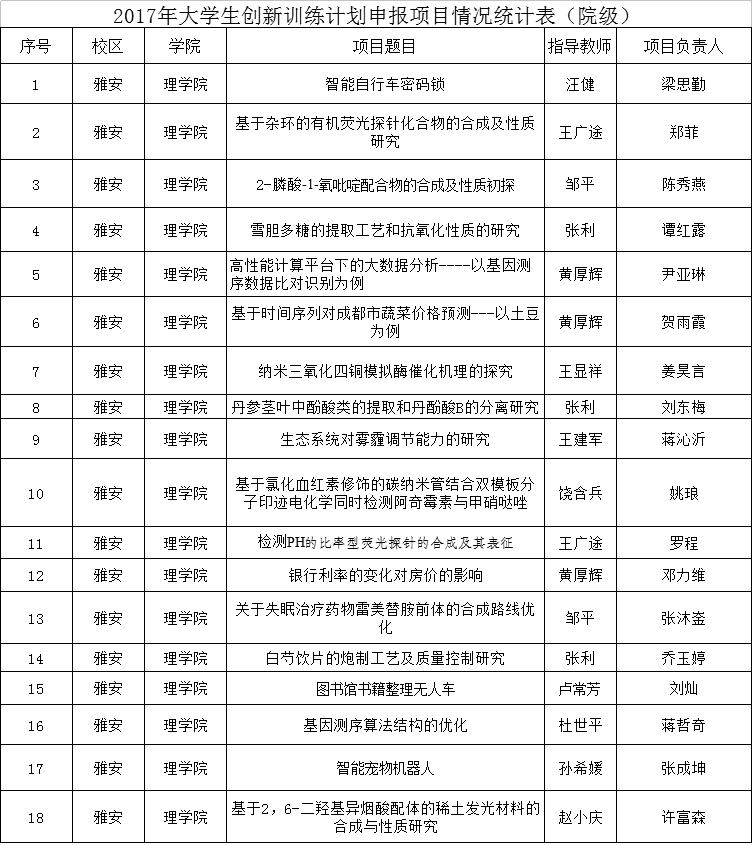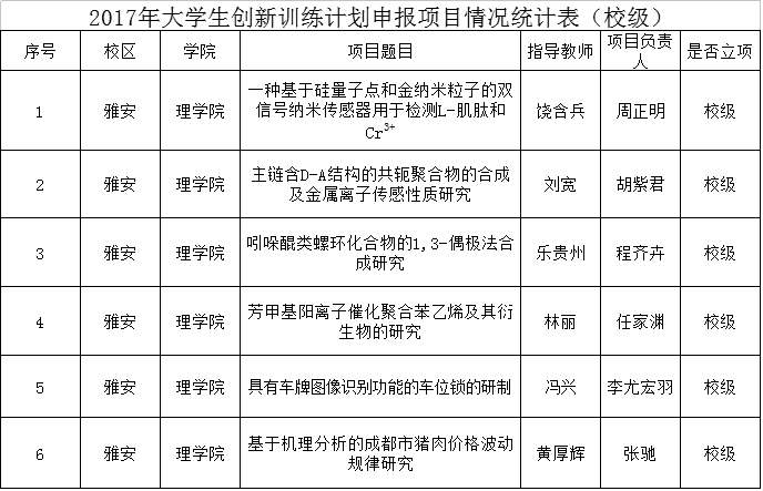 kaiyun登录中国入口登录2017年创新训练计划项目拟申报校级立项公示