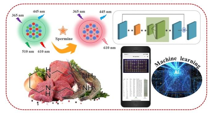 随着社会主要矛盾发生变化,人们开始追求高品质高质量的生活方式,对生鲜食品的安全品质更加注重。因此,开发食物品质监测的方法已成为迫切需要。近日,kaiyun登录中国入口登录“功能纳米农业应用创新”学科培育创新团队在国际权威期刊《ACS Applied Materials & Interfaces》(中科院大类TOP期刊,IF=9.5)和《Food Chmiestry》(中科院大类TOP期刊,IF=8.5)上发表题为《Machine Learning-assisted High-throughput Strategy for Real-time Detection of Spermine Using a Triple-emission Ratiometric Probe》和《Deep learning assisted logic gates for real-time identification of natural tetracycline antibiotics》的研究论文。