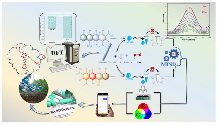 近日,kaiyun登录中国入口登录kaiyun登录中国入口登录功能纳米农业应用创新学科培育团队在荧光智能分析传感方面取得新进展,在材料科学领域权威期刊《Journal of Materials Chemistry C》(中科院二区,IF=5.7)上在线发表研究论文——《Reasonable construction of a bimetallic organic framework MIL-88B (Fe, Ni) nanoenzyme based on deep learning assisted doxycycline hydrochloride and methyloxytetracycline hydrochloride (基于深度学习辅助盐酸多西霉素和盐酸甲基四环素的合理构建双金属有机框架MIL-88B(Fe,Ni)纳米酶)》,通过比色传感和便携式智能手机的结合,开发了抗生素残留的实时监测。