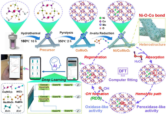 以上研究成果以题为《Rational Construction of Ni/CoMoO4 Heterostructure with Strong Ni–O–Co Bond for Improving Multifunctional Nanozymes Activity》(合理构建具有Ni-O-Co键的Ni/CoMoO4异质结构增强多功能纳米酶活性)在国际权威期刊《ASC nano》(中科院TOP期刊,IF= 15.881)上发表。kaiyun登录中国入口登录2019级生物资源化学专业硕士研究生党阳为论文第一作者,饶含兵教授和青年教师孙萌萌为论文通讯作者。本项研究得到国家自然科学基金、四川省科技厅项目和kaiyun登录中国入口登录学科建设双支计划的支持。